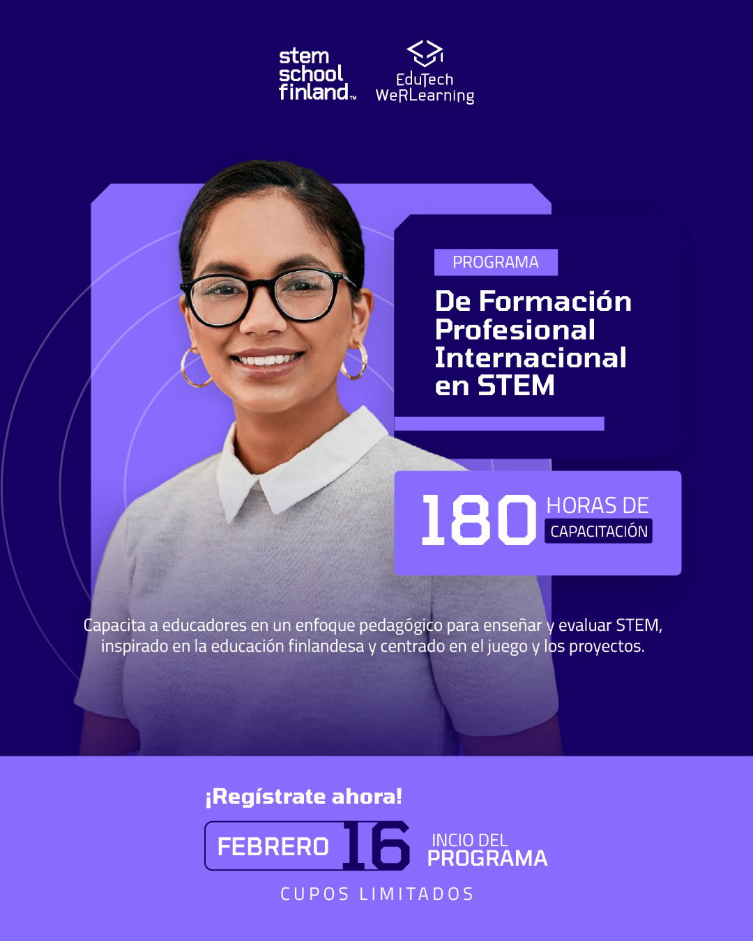 El acompañamiento y la evaluación de los participantes la realiza un grupo de profesionales de EduTech con formación STEM, certificación de STEM School Finland y una especialidad en diversas áreas como: